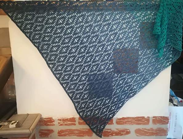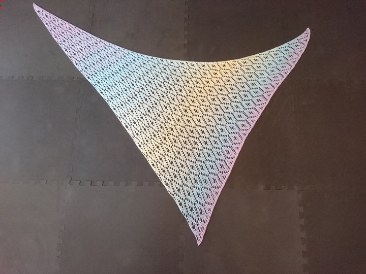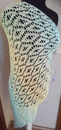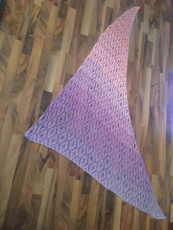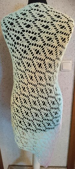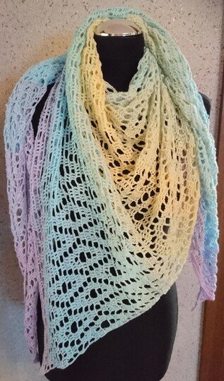 Die Anleitung ist für ein gehäkeltes Tuch, welches in Reihen gearbeitet wird und eine leicht asymmetrisch Form hat.