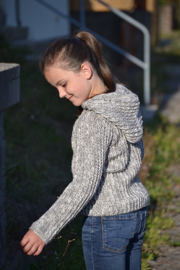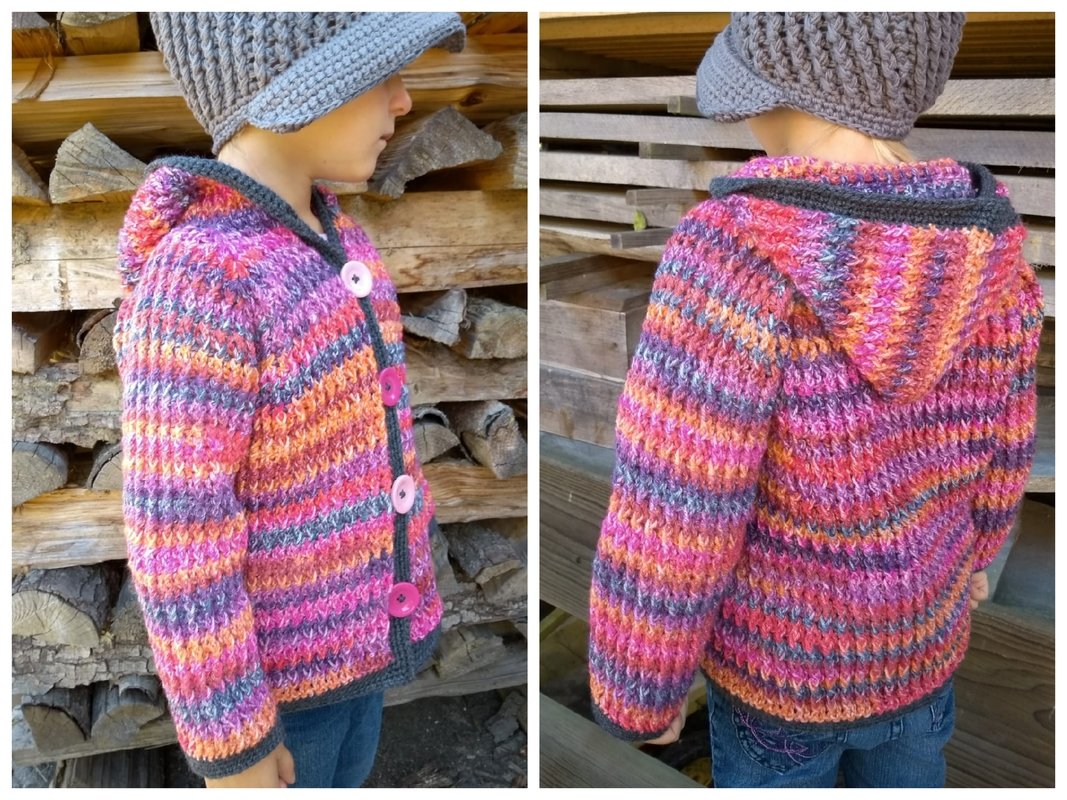 Das Reliefstäbchenmuster ist das erste, was ich als Häkelanfänger gelernt habe und habe es seitdem unzählige Male gearbeitet. So ist, als eine meiner ersten Anleitungen die Kapuzenjacke LUAN entstanden eine der erfolgreichsten Anleitungen in meinem Shop.