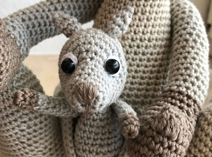 Ich erkläre zwar alles ziemlich genau, aber eine Grundanleitung im Häkeln ist nicht enthalten. Auf 27 Seiten und mit vielen Fotos, sollte es aber gut gelingen diesen kleinen Racker zu häkeln.