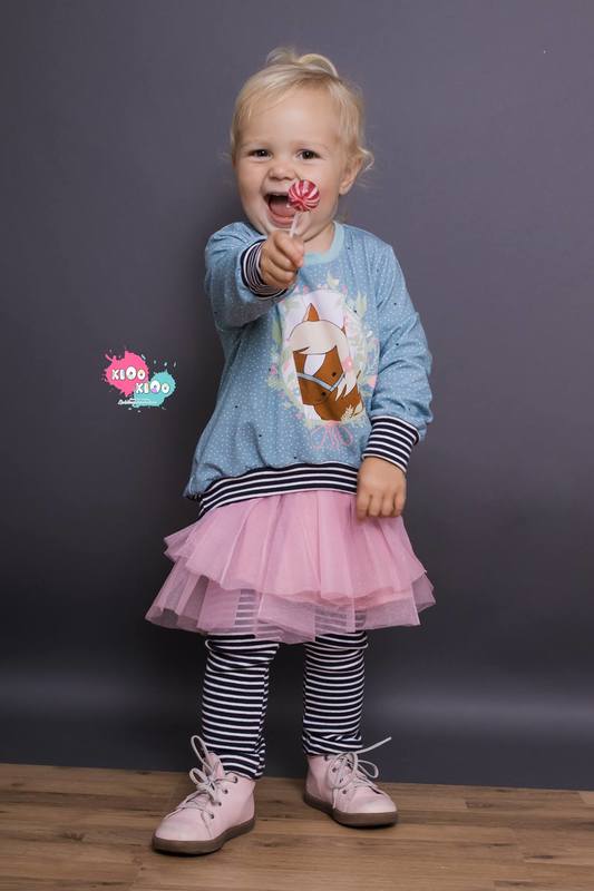 Nähbar ist der Schnitt von Gr. 74 – 176 – und somit ab dem 1. Geburtstag bis in die Teeniezeit nutzbar. Verschiedene Saumabschlüsse sind möglich: Rollsaum, eingefasst mit Band oder mit einem Spitzenabschluss – noch dazu ganz fix genäht. Das schaffen garantiert auch Nähanfänger!