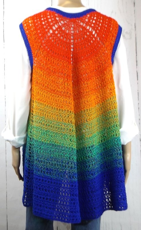 Diese Weste könnte Ihr Lieblingsstück werden! Ob an heißen Tagen mit einem Kurzarmshirt oder auch in der kälteren Zeit mit Langarmshirts oder Blusen darunter. Einfach immer trendy und schick! Die Weste wird in einem Stück gehäkelt und kommt ohne Nähte aus! Sie passt nicht nur zur Jeans, sondern sieht auch cool zu einem engen Kleid oder Rock aus!