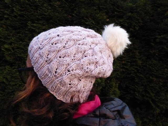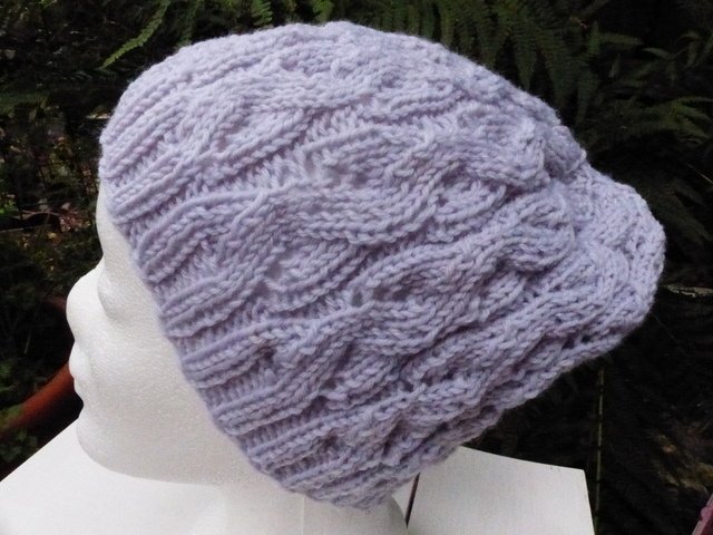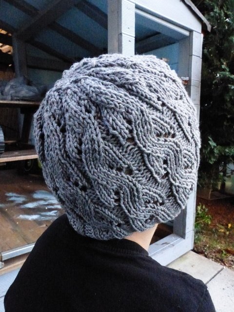 Mit rechten und linken Maschen gestrickt, entstehen durch die Umschläge die miteinander verschlungenen Bahnen - es wird keine Zopfnadel für dieses Muster benötigt.