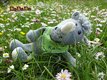 Kale ist mit Strumpfwolle gehäkelt und mit weicher Watte ausgestopft.