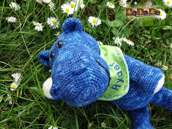 Sie kaufen hier die Häkelanleitung für das knuffige Nilpferd Ryder,