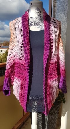 Bei einem 4 fädigen Bobbel und einer Nadelstärke von 3.0 benötigt man bis Größe 38/40 ca 1750 m und für die Arme je 85 m Lauflänge je nachdem wie fest oder locker man häkelt und groß man die Jacke machen möchte (also insgesamt ca 1920 m Lauflänge).