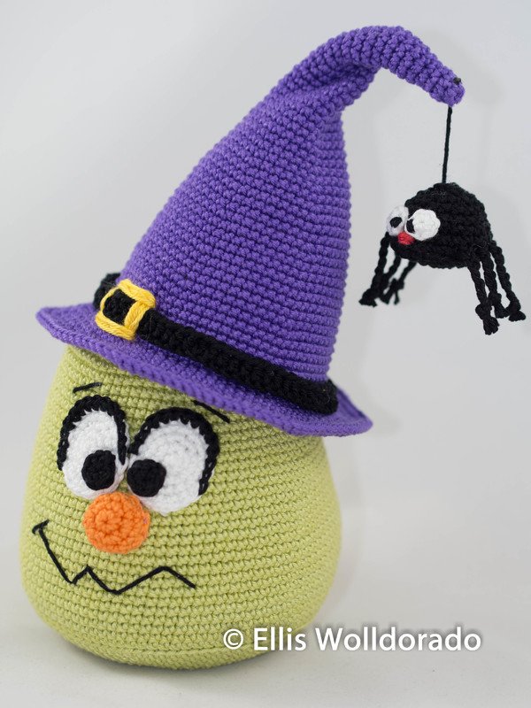 Der Halloween Wichtel - ein kugeliger Gnom mit einer lustigen Baumel-Spinne am Hut. Genau die richtige Dekoration für den Herbst und Halloween.