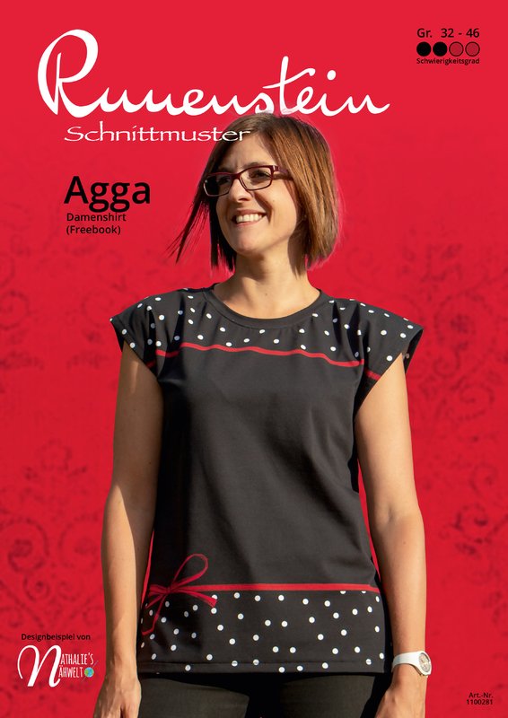 Agga ist ein T-Shirt für Damen mit einem überschnittenem Arm. Superschnell zu nähen und ganz einfach. Agga ist ein Freebook und genauso aufgebaut, wie alle Runenstein Schnittmuster und Anleitungen.
