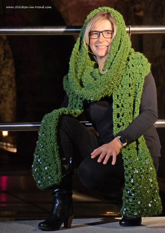 Der Schal misst pro Seite etwa 200 x 27 cm.