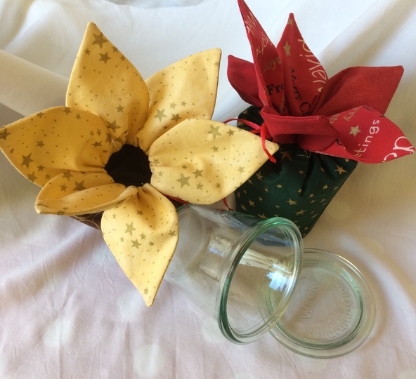 Diese Geschenkverpackung wurde ursprünglich für ein kleines Einmachglas entwickelt, kann aber durch einen Pappstreifen auch für andere Geschenke genutzt werden.