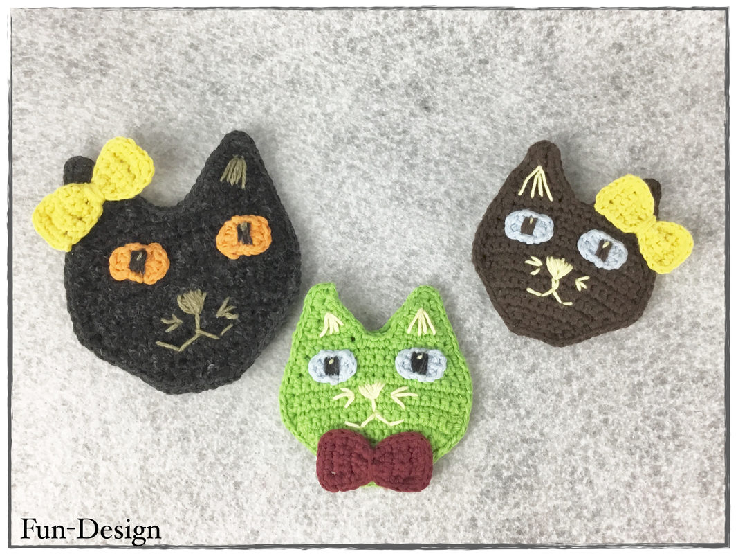 Gehäkelt mit Nadelstärke 3 wird ein Katzenkopf ca. 9 cm groß