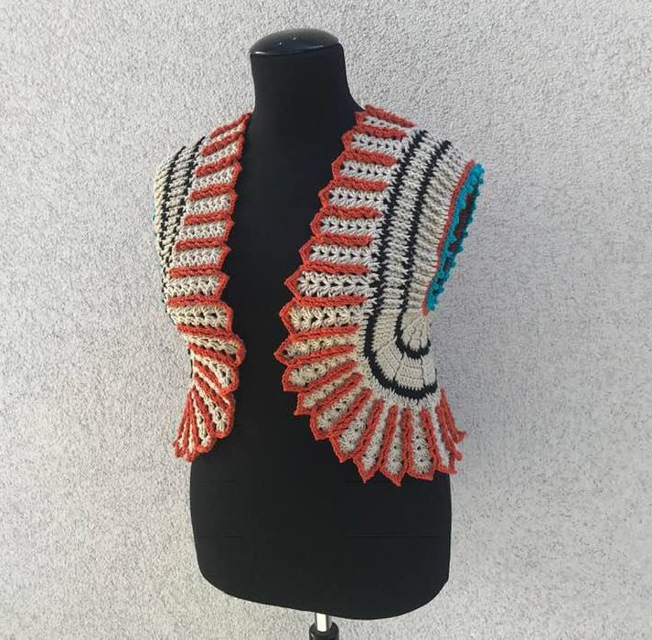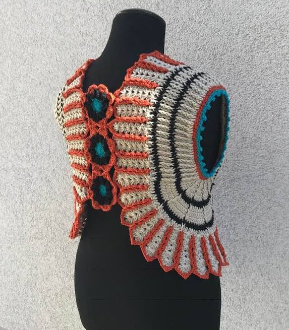 Der Bolero “Siux“ ist eine feine Handarbeit mit Reliefstäbchen und 3 Blumen als Rückenteil ....mit meiner Foto für Foto Anleitung ist der Bolero “Siux“ auch leicht nach zu machen