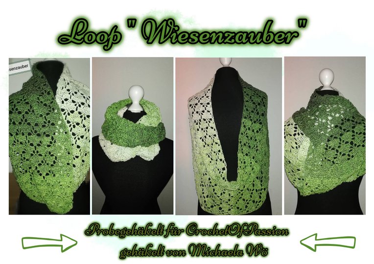 Der Loop " Wiesenzauber" ist für Anfänger geeignet . Er hat ein kinderlichtes Muster, was man schnell im Kopf hat .