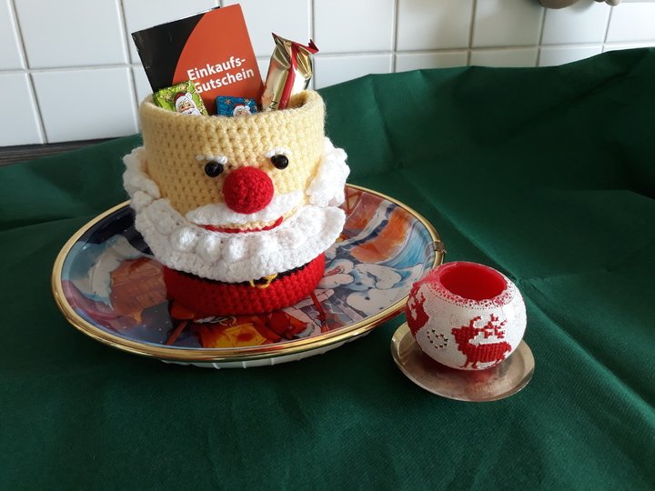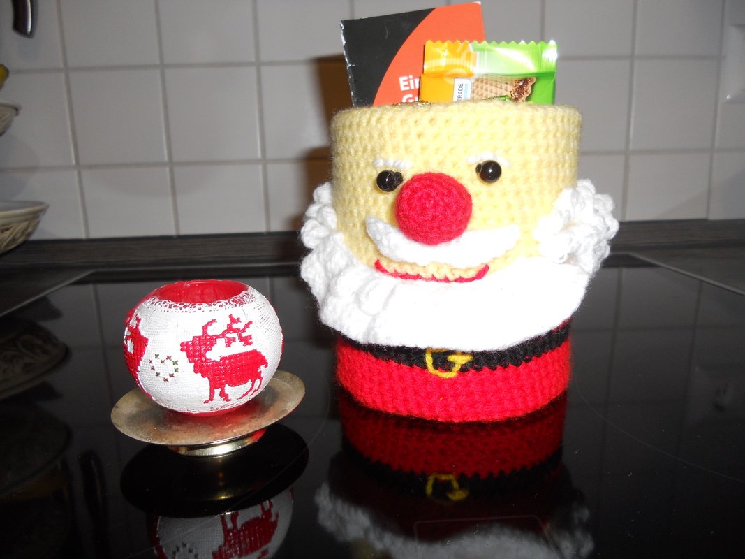Diese Anleitung beschreibt auf 7 Seiten wie Du einen Weihnachtsmann häkelst deren Innenleben eine Dose ist. Mit Süßem oder kleinen Geschenken gefüllt, ist er ein tolles Mitbringsel. Alles wird Schritt für Schritt, begleitet von Bildern, erklärt. Kenntnisse sollte man über feste Maschen, Stäbchen, halbe Stäbchen, Doppelstäbchen, Fadenring, Luftmaschen sowie zu-und abnehmen haben. Diese Anleitung ist nur für private Zwecke bestimmt.