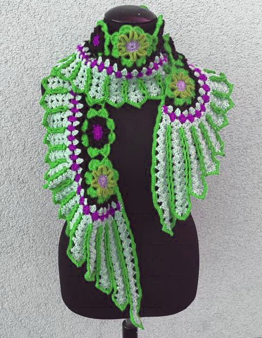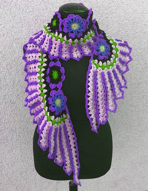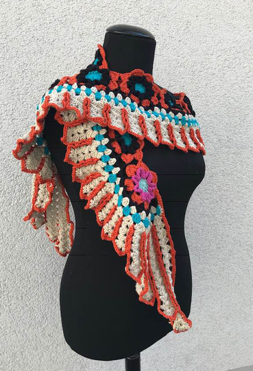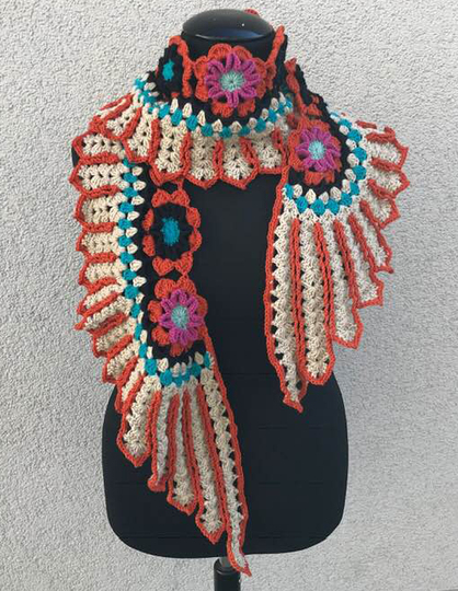 Flügelschal - Tuch “Siux“ ist eine feine Handarbeit mit 13 Blumen und zwei netten Flügeln...mit meiner Foto für Foto Anleitung ist das Flügelschal - Tuch “Siux“ auch gut nach zu machen