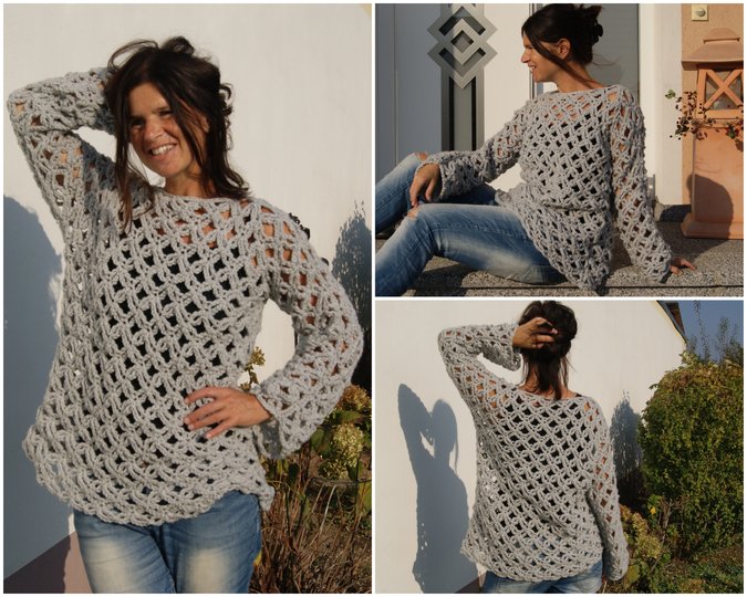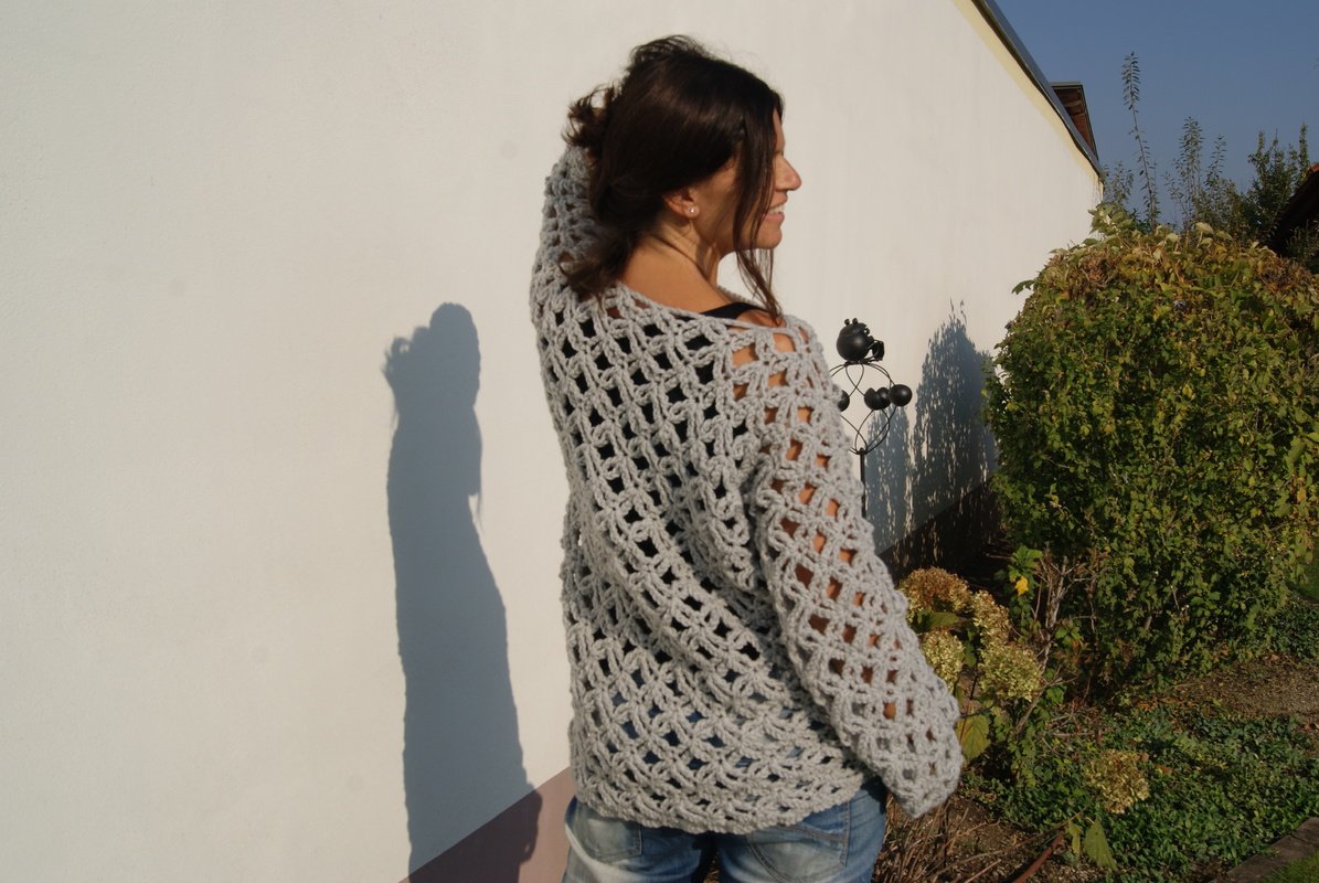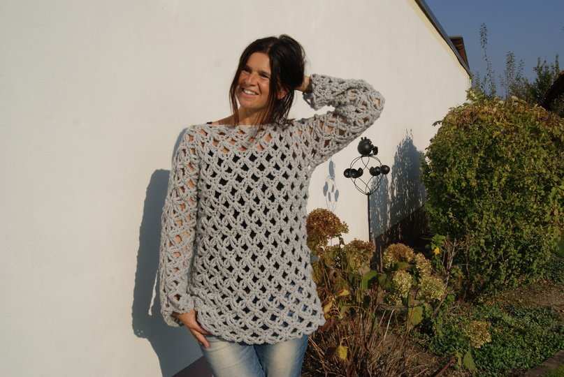 Cooler, lässiger und kuschelig bequemer Häkelpulli, der in angesagtem Oversize-Look perfekt zum Drüberziehen ist - egal ob über Top oder Langarmshirt! Flott gehäkelt kann man sich bald darauf freuen, ihn auszuführen!