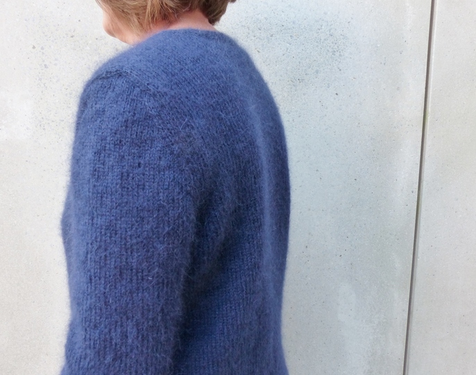 Sie wird komplett mit zwei Fäden gestrickt und hat konventionelle Armkugeln die eingenäht werden. Ich habe mich gegen die angestrickten Armkugeln entschieden, weil mir die Ärmel dabei zu weit wurden. Ich mag schmale Ärmel.
