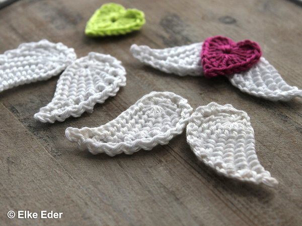 Nötige Vorkenntnisse: Luftmasche, Kettmasche, feste Masche, halbes Stäbchen für die Flügel sowie Stäbchen, Doppel- und Dreifachstäbchen für das Herz.