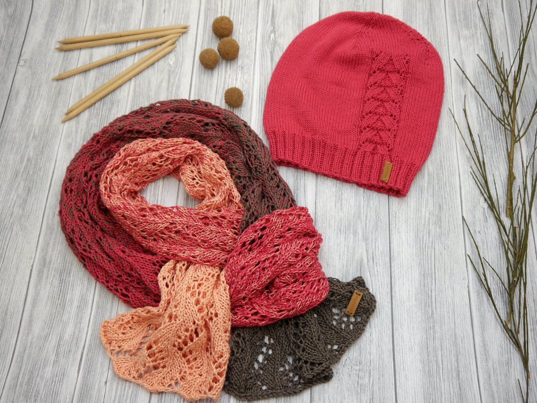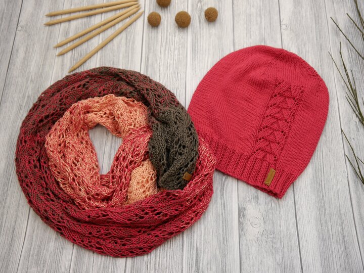 Der raffiniert gestrickte Farbverlaufs-Schal besteht aus einem sehr schönen und leicht zu strickenden Lacemuster, ebenso die dazu passende Beanie. Beim Styling des Schals können Sie kreativ sein – lang und mit einem Gürtel befestigt, um den Hals gewickelt oder auch verknotet drapiert.
