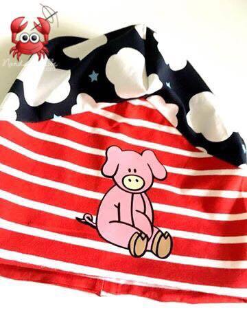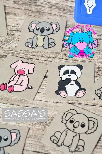 Das kleine Schweinchen macht sich als Plott ganz toll auf einem Memory, auf Schlüsselanhängern, als Luftballonhüllen und besonders auch auf Halstüchern.