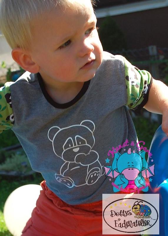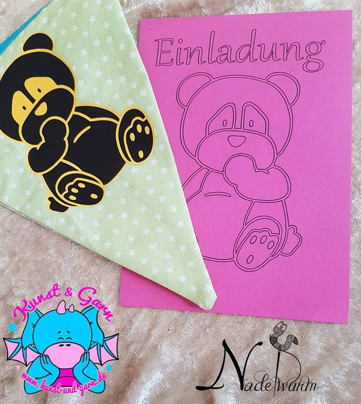 Der kleine Panda macht sich als Plott ganz toll auf einem Memory, auf Schlüsselanhängern, als Luftballonhüllen und besonders auch auf Halstüchern.