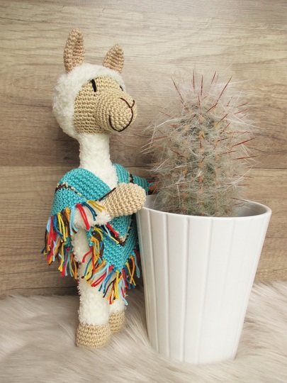 Die ausführliche Häkelanleitung erklärt Dir auf 19 Seiten mit insgesamt 58 Bildern, wie Du das Lama und natürlich auch den (ausziehbaren) Poncho häkelst.