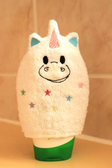 Einhorn-Waschlappen als ITH-Datei d.h. er wird komplett in der Stickmaschine hergestellt.