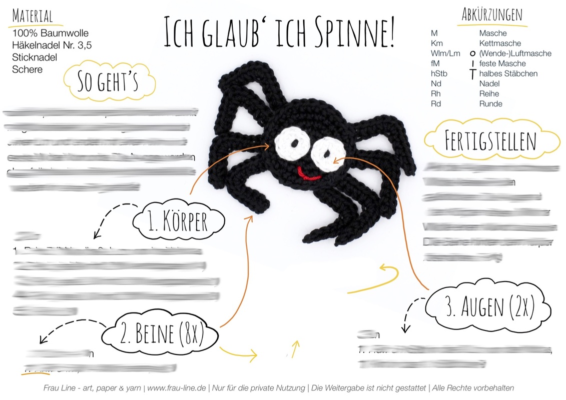 E-Book, Häkelanleitung für die Applikation "Spinne", 1 Seite, Schwierigkeitsstufe: Anfänger mit Vorkenntnisse