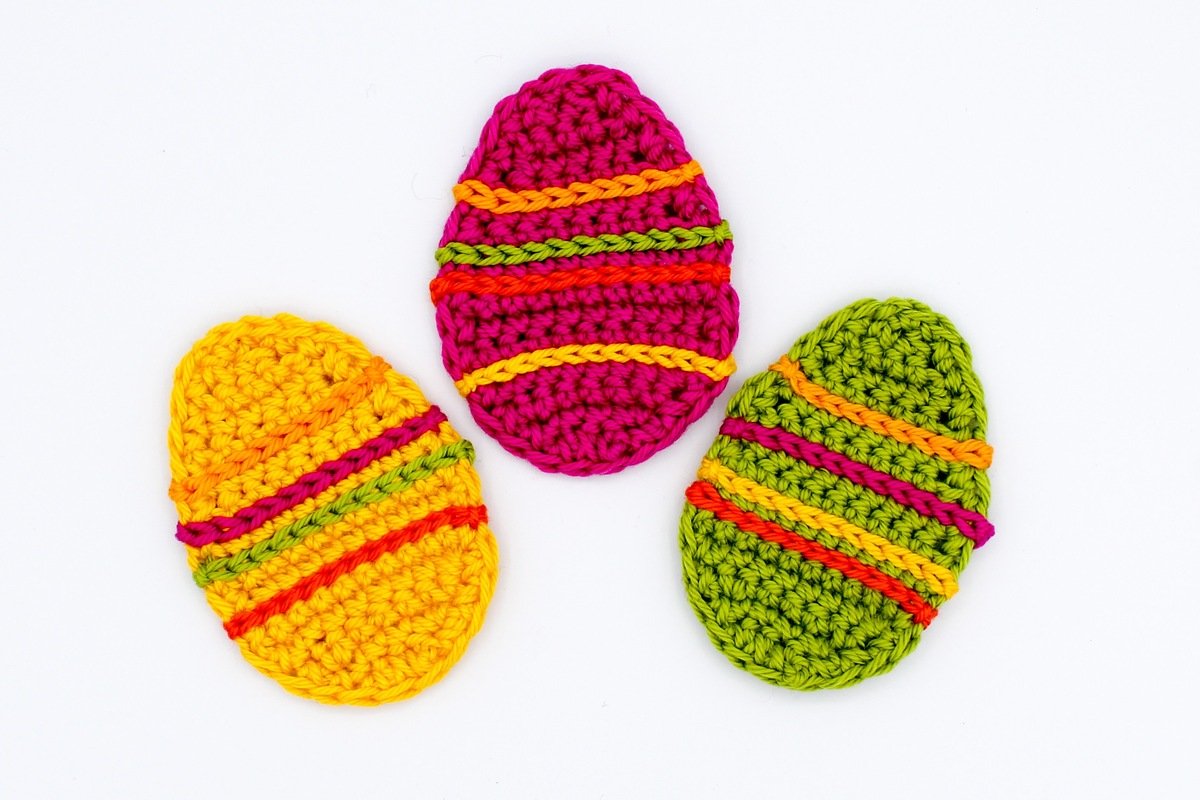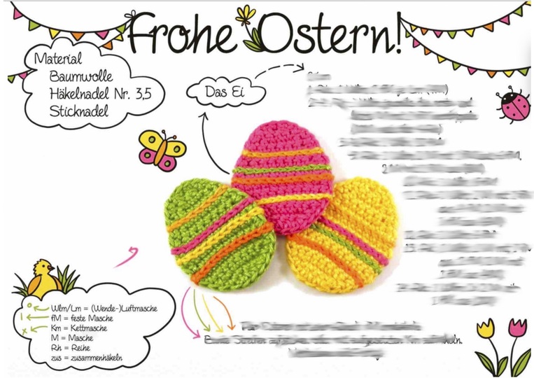 E-Book, Häkelanleitung für die Applikation "Ostereier", 1 Seite, Schwierigkeitsstufe: Anfänger/innen