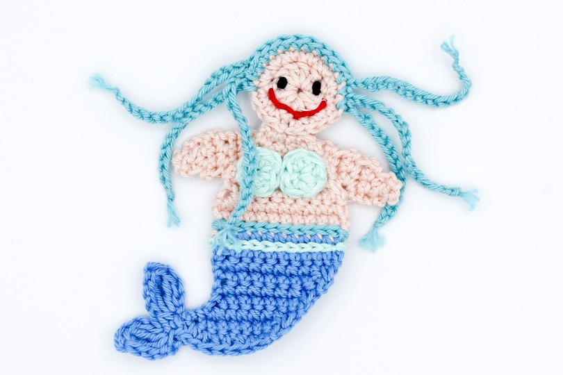 Größe: Je nach verwendeter Wolle ist die Meerjungfrau ca. 8,5 x 11 cm groß