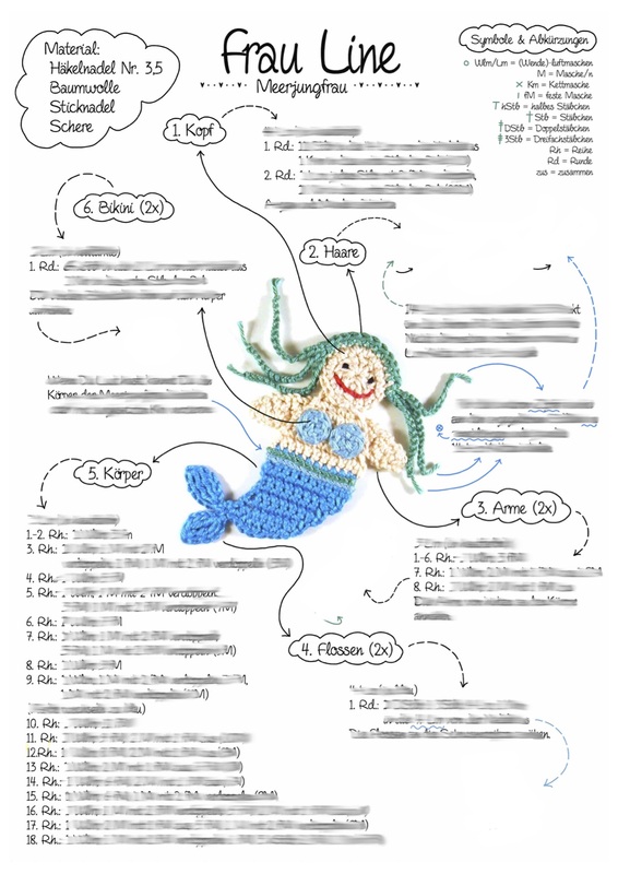 Zauberschön illustriertes E-Book für eine gehäkelte Meerjungfrau.