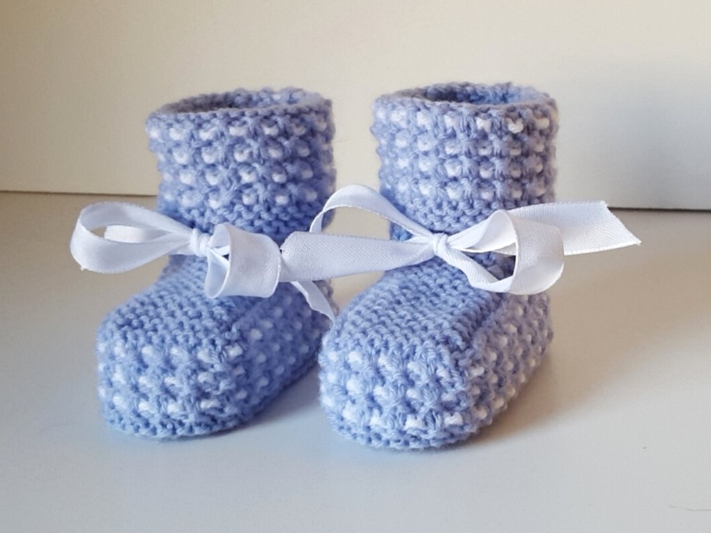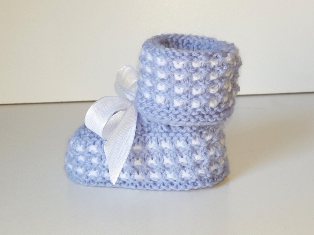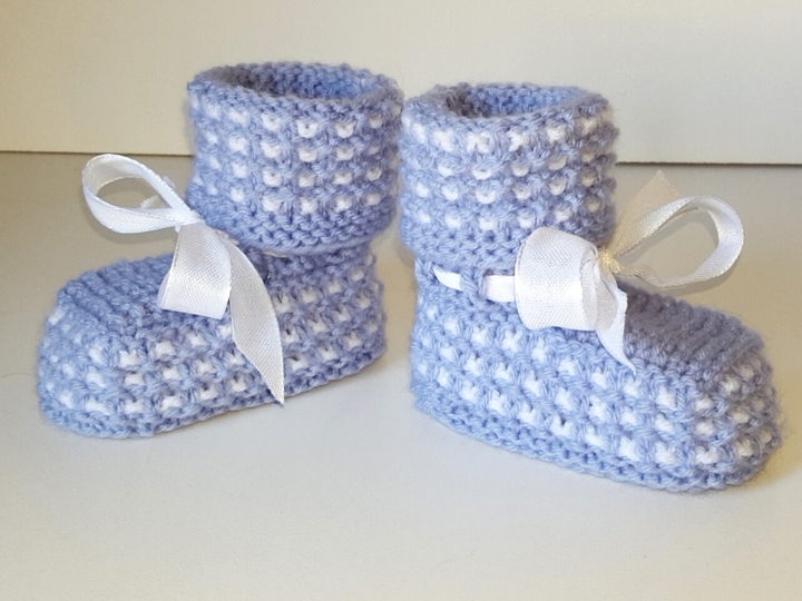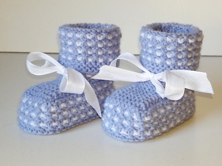 Strickanleitung Babyschuhe im Wabenmuster ohne Nadelspiel, Baby-Booties, Sohlenlänge ca. 10,5 cm