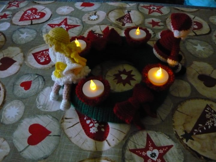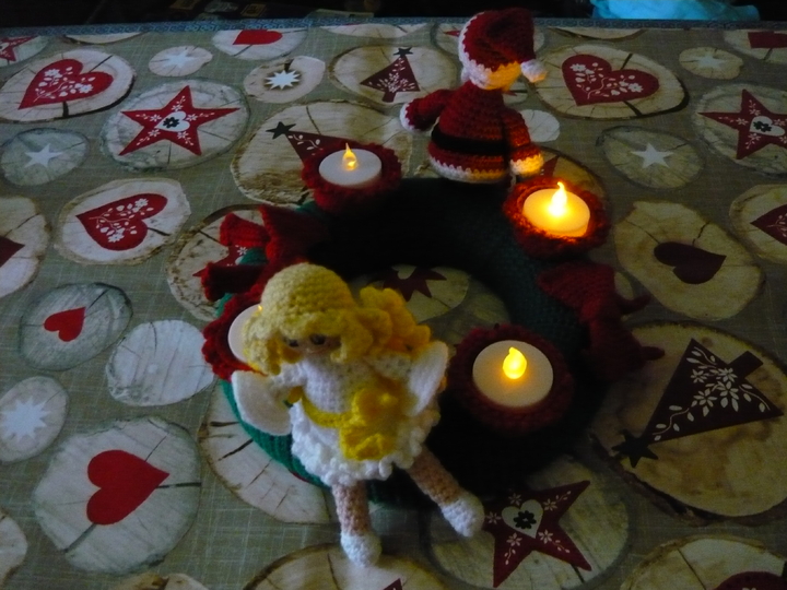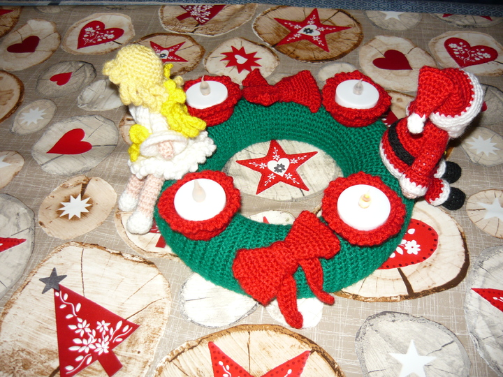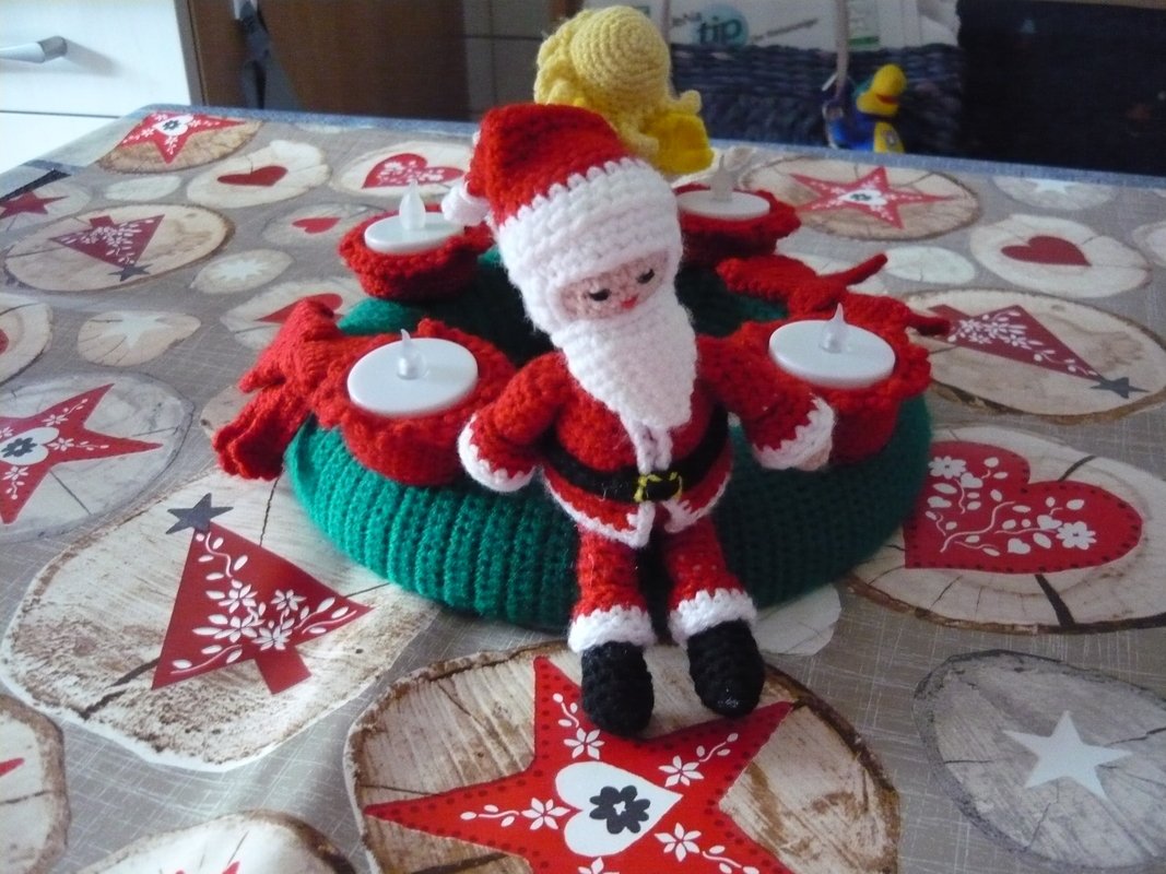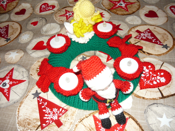 Größe: Durchmesser Kranz ca. 24 cm, Höhe Weihnachtsmann ca. 16 cm