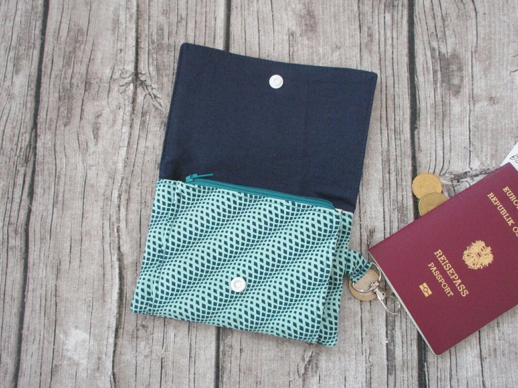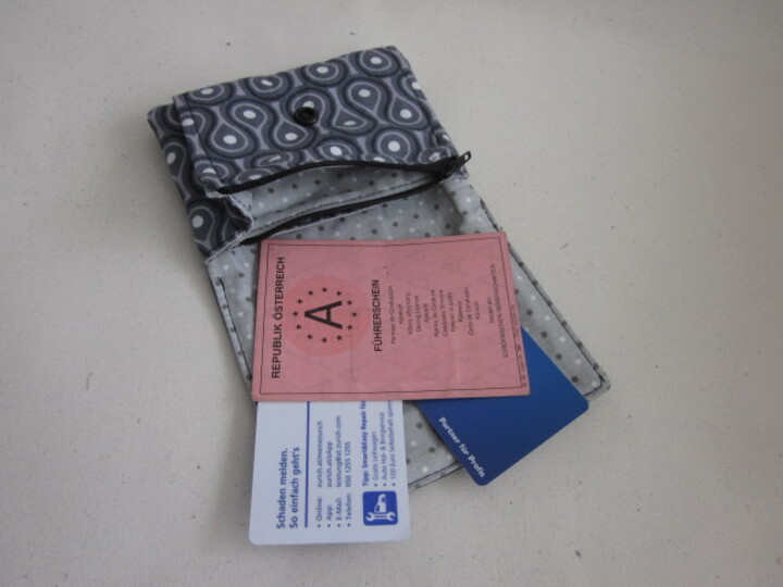Wer möchte kann innen und/oder außen Sichtfenster für Fotos oder Ausweise einnähen.