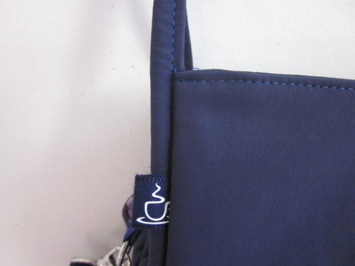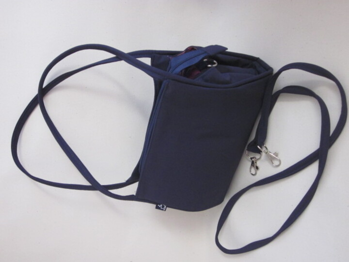 Besonders reizvoll sind gepaspelten kurzen Träger, die nahtlos in die Paspel-Einfassung der Seitenkanten übergehen. Seitlich kann zusätzlich noch ein langer Gurt (ebenfalls aus Paspelband) eingehängt werden, sodass die Tasche auch über die Schulter getragen werden kann.