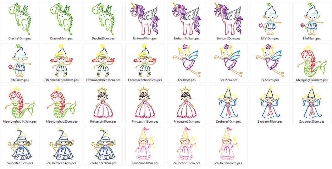 Stickdateiserie mit 10 verschiedenen Motiven in je 3 Größen