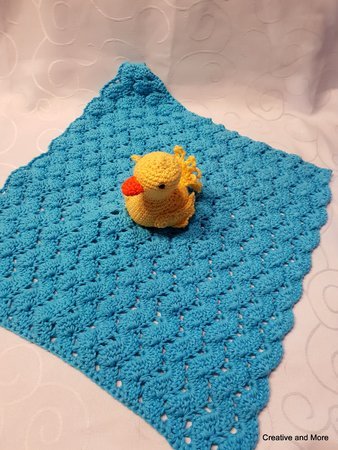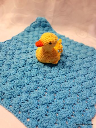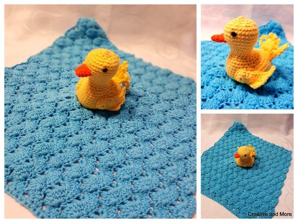 "Alle meine Entchen schwimmen auf dem See....." Jeder von uns kennt dieses Kinderlied aus alten Tagen und genau das fiel mir beim häkeln dieses süßen Schnuffeltuches ein. Das wellenförmige Muster des Tuches ist super einfach, da es nur aus Stäbchen und Luftmaschen besteht. Es ist die perfekte Grundlage für die kleine Ente, die gemütlich in ihrem kleinen See, mit leichten Wellengang schaukelt. Damit es noch spannender für die Kids wird, haben ich noch zusätzlich einen Quietscher sowie eine Rasselkugel eingearbeitet.