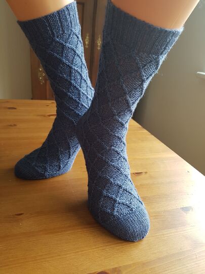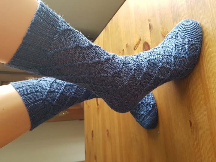 Socken aus 4- fädiger Sockenwolle mit Gittermuster. unisex, Größe 38 - 43
