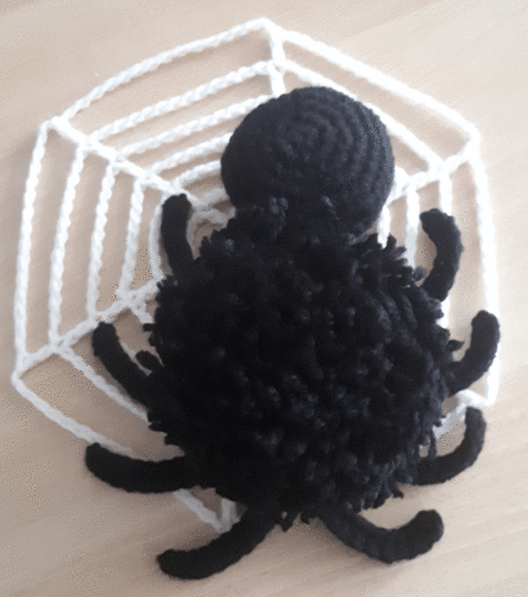 Das Modell besteht aus einer bebilderten und genau beschriebenen Pdf-Anleitung (21 Seiten) zum Häkeln der Spinne.