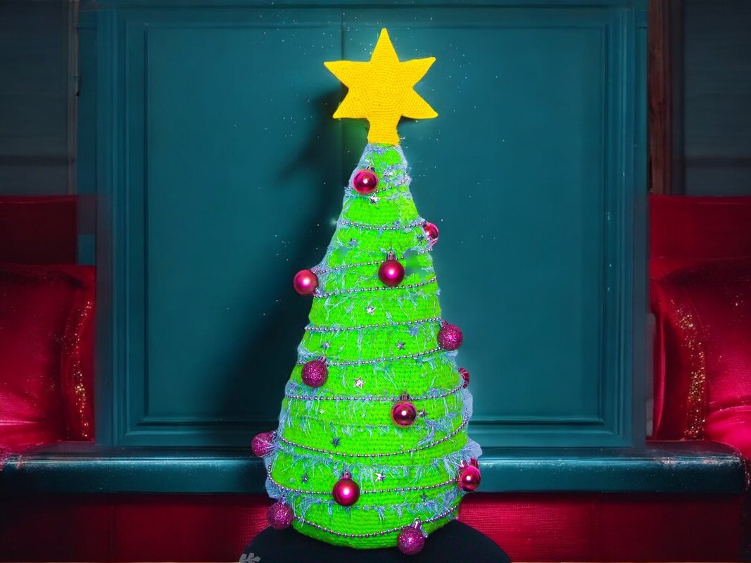 Gestalte deinen eigenen Weihnachtsbaum – mit Licht und liebevoller Deko! Mit dieser ausführlichen Häkelanleitung erschaffst du deinen ganz individuellen Weihnachtsbaum. Der Baum erreicht eine beeindruckende Höhe von 50 cm (ohne Spitze) und wird garantiert zum absoluten Blickfang in deinem Zuhause. Besonders stimmungsvoll wirkt er, wenn er im Dunkeln leuchtet. In der Anleitung enthalten sind außerdem Schleifen, Glocken und Kugeln, sodass du deinen Baum komplett selbst dekorieren kannst. Alternativ lässt er sich auch wunderbar mit echten Kugeln oder einer Girlande schmücken. Egal, für welche Variante du dich entscheidest – dein Weihnachtsbaum wird zu einem echten Unikat.