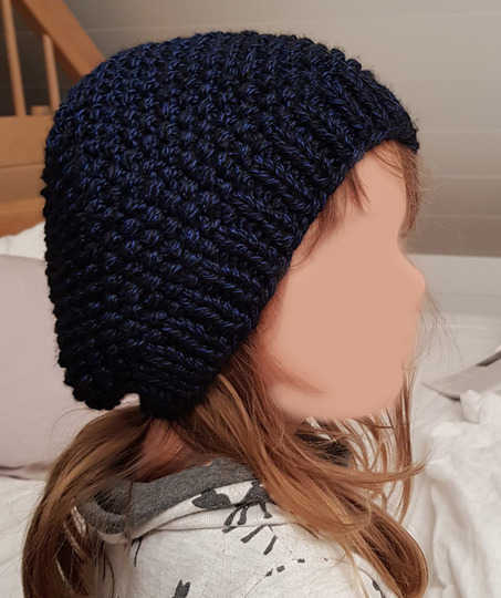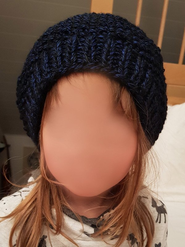 Die Mütze liegt relativ eng an und fällt hinten nur ein klein wenig nach unten. Das Perlmuster sorgt dafür, dass die Mütze schön dick ist.