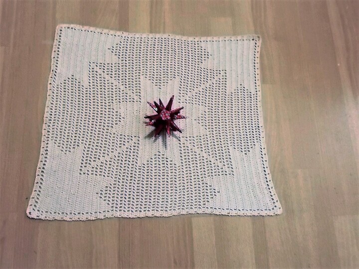 Diese Tischdecke hat ein schönes Sternenmotiv, sehr schön zu Weihnachten und im Advent.