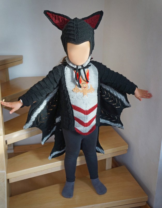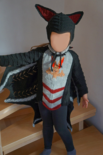 Passend zu Halloween ein Pullover für die kleine Fledermaus. Die Konfektionsgröße des Kindes sollte in etwa 110 betragen. (Ich denke, er passt von 104-116, also ca. 3-5 Jahre)