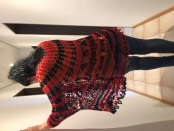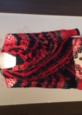 Anstelle der Arme mit Bündchen habe ich diese offen gelassen. Jetzt habe ich eine tolle Tuch-Jacke mit