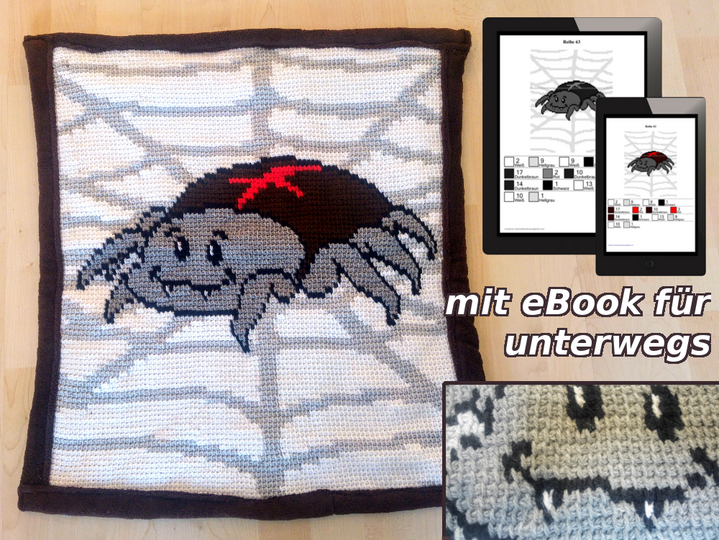 Die Anleitung enthält zusätzlich eine PDF Datei mit der genau abgezählten Maschenanzahl jeder Farbe pro Reihe. Diese Datei kann auf den eBook-Reader oder das Smartphone geladen werden um auch unterwegs bequem häkeln zu können. :)