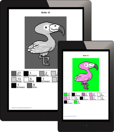 Die Anleitung enthält zusätzlich eine PDF Datei mit der genau abgezählten Maschenanzahl jeder Farbe pro Reihe. Diese Datei kann auf den eBook-Reader oder das Smartphone geladen werden um auch unterwegs bequem häkeln zu können. :)