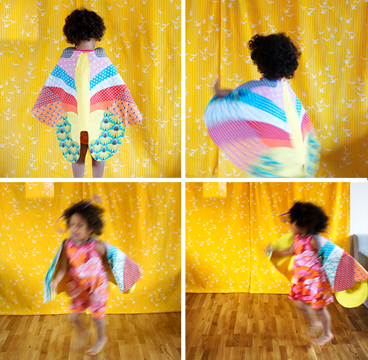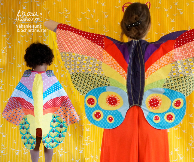 Das Kostüm Schmetterlings-Umhang ist ein schönes Nähprojekt um Stoffreste aufzubrauchen. Ebenso ist es vielleicht Dein erstes Patchwork Projekt. Damit hast Du unendlich viele Möglichkeiten die Schmetterlingsflügel zu gestalten. Folglich bestimmst Du selber wieviele Farben und Stoffe Du verwendest. Ebenso kannst Du die Flügelteile beim Ausschneiden nach Deinem Geschmack aufteilen. So erhältst Du ganz individuelle und einzigartige Schmetterlingsflügel.