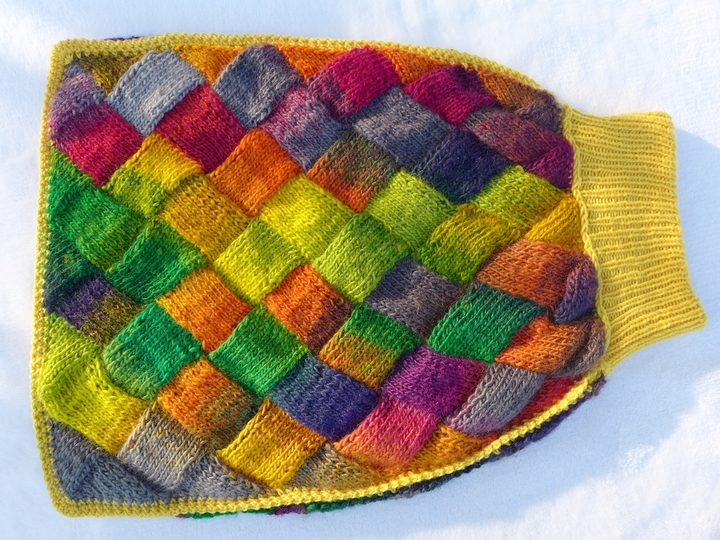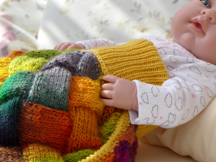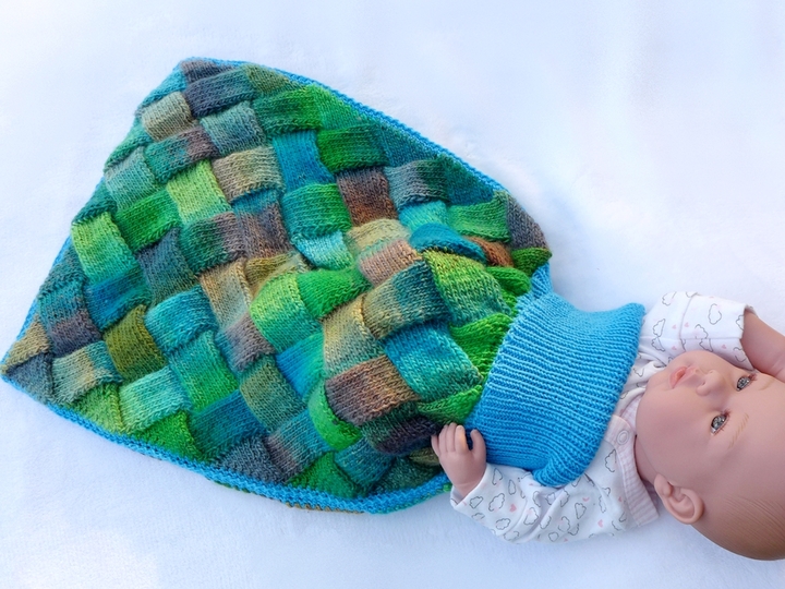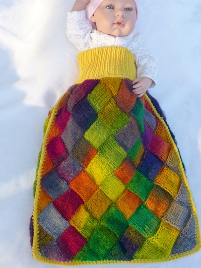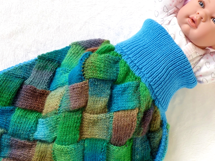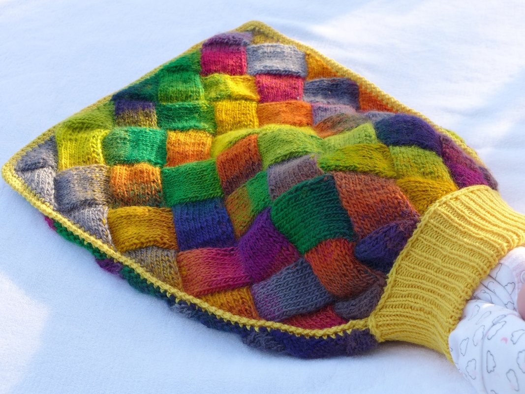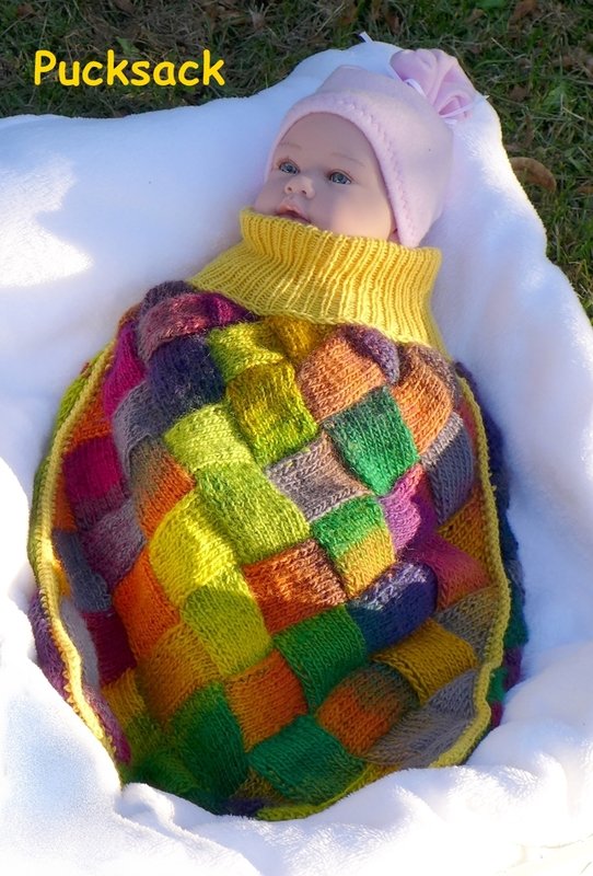 Das doppelte Bündchen im elastischen Rippenmuster passt sich jedem Babybäuchlein automatisch an und schützt den empfindlichen Bauch- und Nierenbereich besonders gut. Der Strampelsack im wunderschönen Flechtmuster wird direkt an das Bündchen angestrickt. Die Flechtoptik kommt besonders gut durch die harmonisch aufeinander abgestimmten langen Farbverläufe des kuschelig-weichen australischen Merinogarns zur Geltung. Das Stricken macht besonders viel Spaß, weil immer wieder neue Farbkombinationen direkt aus dem Wollknäuel entstehen. Am Ende erhalten wir so einen einzigartigen Strampelsack. Das ideale Geschenk für werdende Eltern ;-)