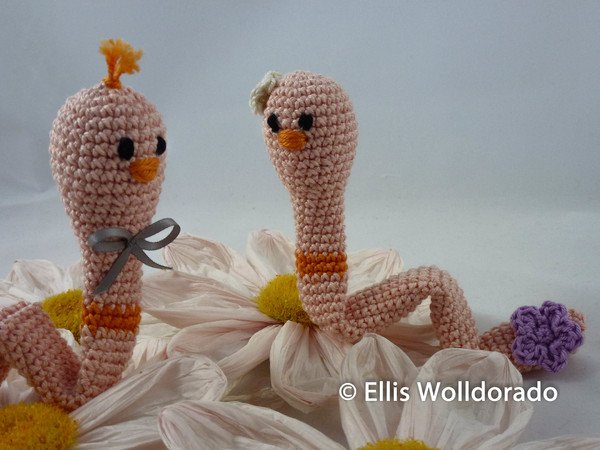 Diese Anleitung beinhaltet die Beschreibung für die im Artikelbild abgebildeten Figuren inkl. der kleinen am Wurm befestigten Blümchen. Außerdem sind viele hilfreiche Fotos in der Anleitung vorhanden.