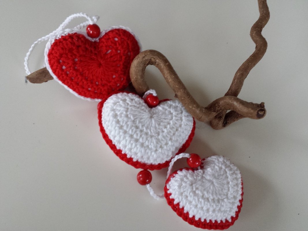 Diese süßen Herzchen kannst Du ganz einfach selbst häkeln. Sehr schön als Dekoration am Fenster auf dem Tisch oder als Geschenk zum Valentinstag, Muttertag oder einfach nur so.