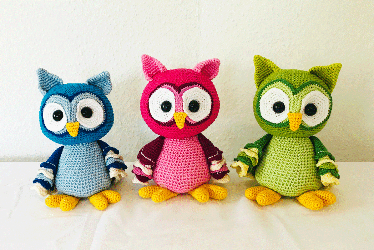 Willkommen in unserer bunten Regenbogenwelt. Mit dieser Anleitung kannst Du Dir Deine eigene kleine Eulenwelt zusammenhäkeln. Je nach Farbwahl passen die niedlichen Eulen, fast in jede Jahreszeit.